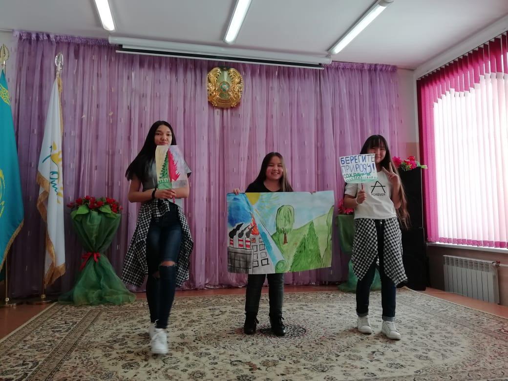 В флешмобе приняли участия ученики 4-7 классов, выходили со своими лозунгами и плакатами о природе. Таким образом, учащиеся показали свое неравнодушное отношениек экологическим проблемам природы. Организаторы флешмоба заместители директора Ауэлбекова Г.У. и Дараева Г.У. вместе с вожатым Қали А. С. объяснили учащимся вклад каждого человека в сохранений природы.