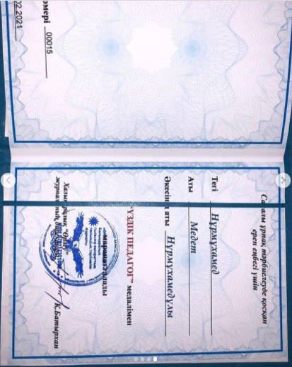 Халықаралық "Өрлеу-өркендеу" ғылыми -ақпараттық, танымдық-тәрбиелік журналының ұйымдастыруымен өткізілген "Үздік педагог" байқауына қатысып, 1 дәрежелі дипломмен марапатталып, "Үздік педагог" төс белгісімен Жетісу ауданы, №102 ЖББ мектептің информатика пәні мұғалімі Нұрмұхамед Медет Нұрмұхамедұлы марапатталды!!!
