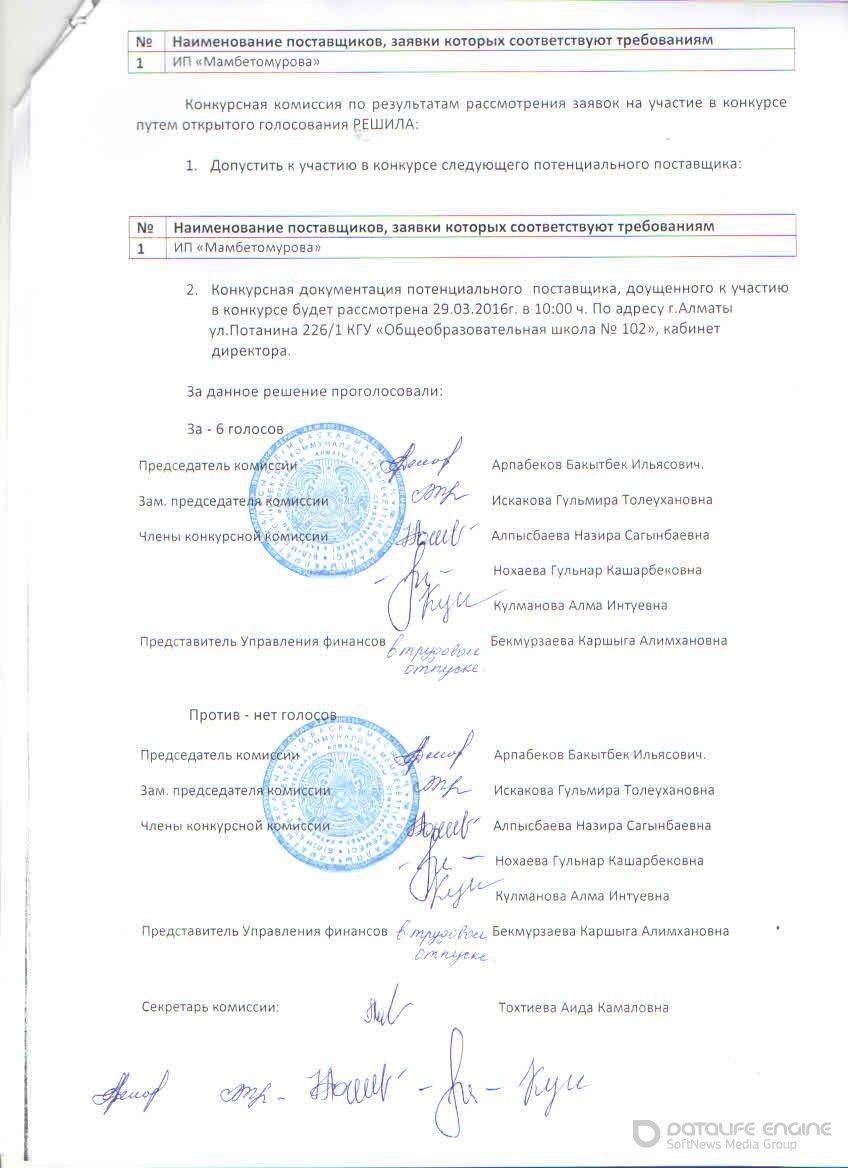 Конкурсқа қатысуға рұқсат беру туралы хаттама » КГУ «общеобразовательная школа №102» Управления образования г. Алматы