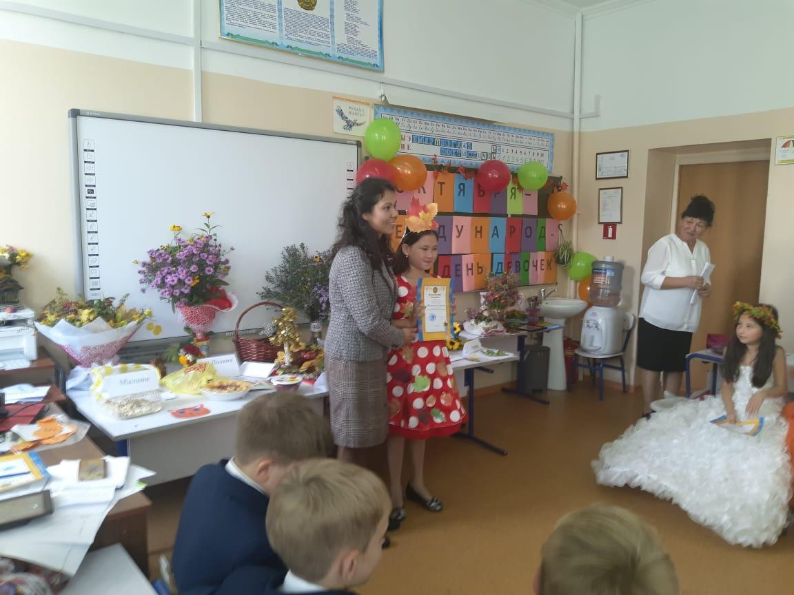 По плану Жетысуского районного отдела образования и по инициативе Жетысуского районного филиала «Нұр Отан» в рамках декады посвещщенному международному Дню девочек учительница начальных классов КГУ «ОШ№102» Аккамиева Г.Б. провела интеллектуальное позновательное мероприятие «Осень раскрасавица»