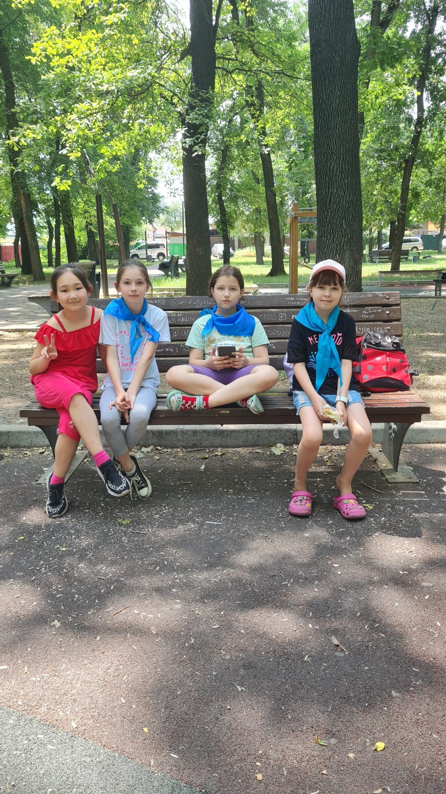 «Балдырған» жазғы демалыс лагерінің жұмыс жоспары бойынша 14.06.23 ж балалармен бірге «Таза ауадағы демалыс» тақырыбында іс-шара ұйымдастырылып өткізілді. Балалар мектептің шағын учаскесінде орналасқан «Сквер» саябағына барып қайтты. Бұл саяхаттың басты мақсаты- табиғатты танып білуге деген қызғушылығын ояту, өсімдіктер мен жануарларды аялай білуге, қамқорлыққа ала білуге, табиғаттың сұлулығын сезіне білуге үйретеді. Балалар осы саябаққа бару арқылы қоршаған ортаның әсемдігі мен сұлулығын түсіне отырып, қоршаған ортаға деген қызығушылығы оянатыны сөзсіз. Баланың танымдық дамуы ойын барысында, табиғи нысандар мен мен құбылыстарға бақылау жасау, заттарды қарап, зерттеу кезінде , табиғат пен табиғат күнтізбесіндегі ауа-райы жағдайына бақылау нәтижелерін айта білуге үйренеді. Әрбір жеке бала-қоршаған ортаны қызғушылықпен қабылдайтын кішкентай зерттеуші. Бала белсенді әректтерге талпынады. Сондықтан да бақылау мен зерттеу сияқты әдістер балаға неғұрлым жақын болып табылады, жоспар бойынша жасалған саяхат баланың , зерттеу мен бақылау әдістеріне үйретеді. Серуенге шығу арқылы бала табиғаттың әр құбылысымен, оның бөлшектерінің өзіне тән қасиеттерімен танысады .Саяхаттан көрген –білгенін әңгімелеп айту арқылы ой өрісі кеңейіп сөздік қорын дамитындығын байқауға болады.Балалар саяхаттан жақсы көңіл-күймен оралды.