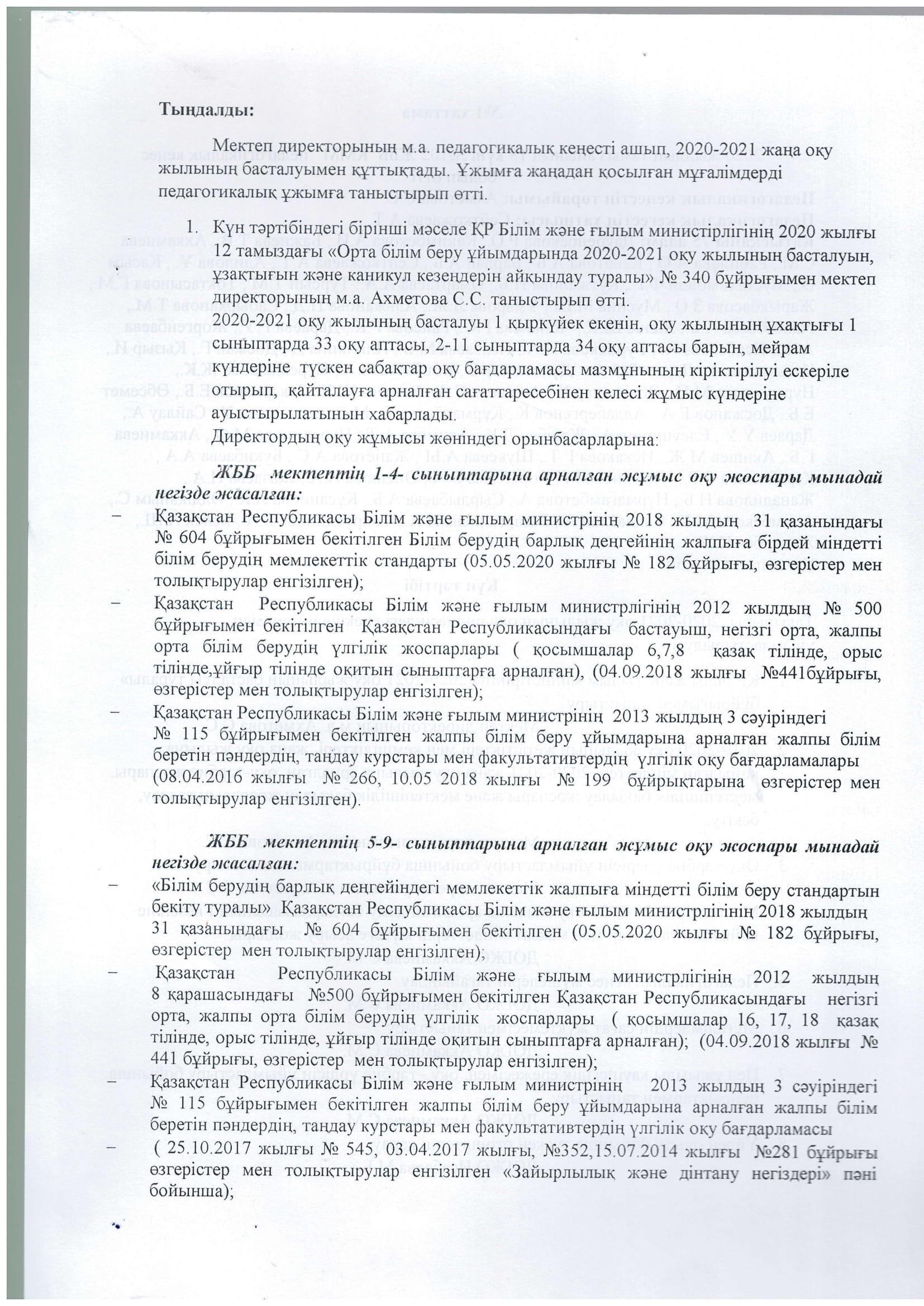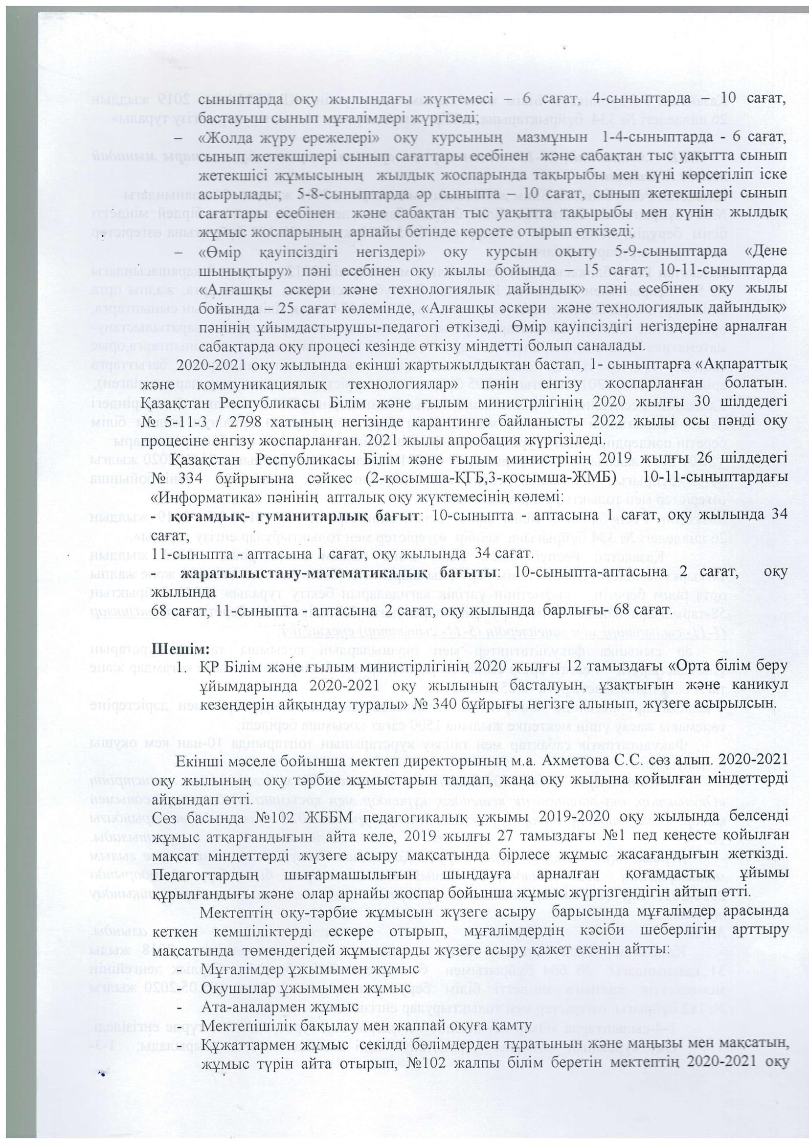 №1 хаттама Педагогикалық кеңес » КГУ «общеобразовательная школа №102» Управления образования г. Алматы