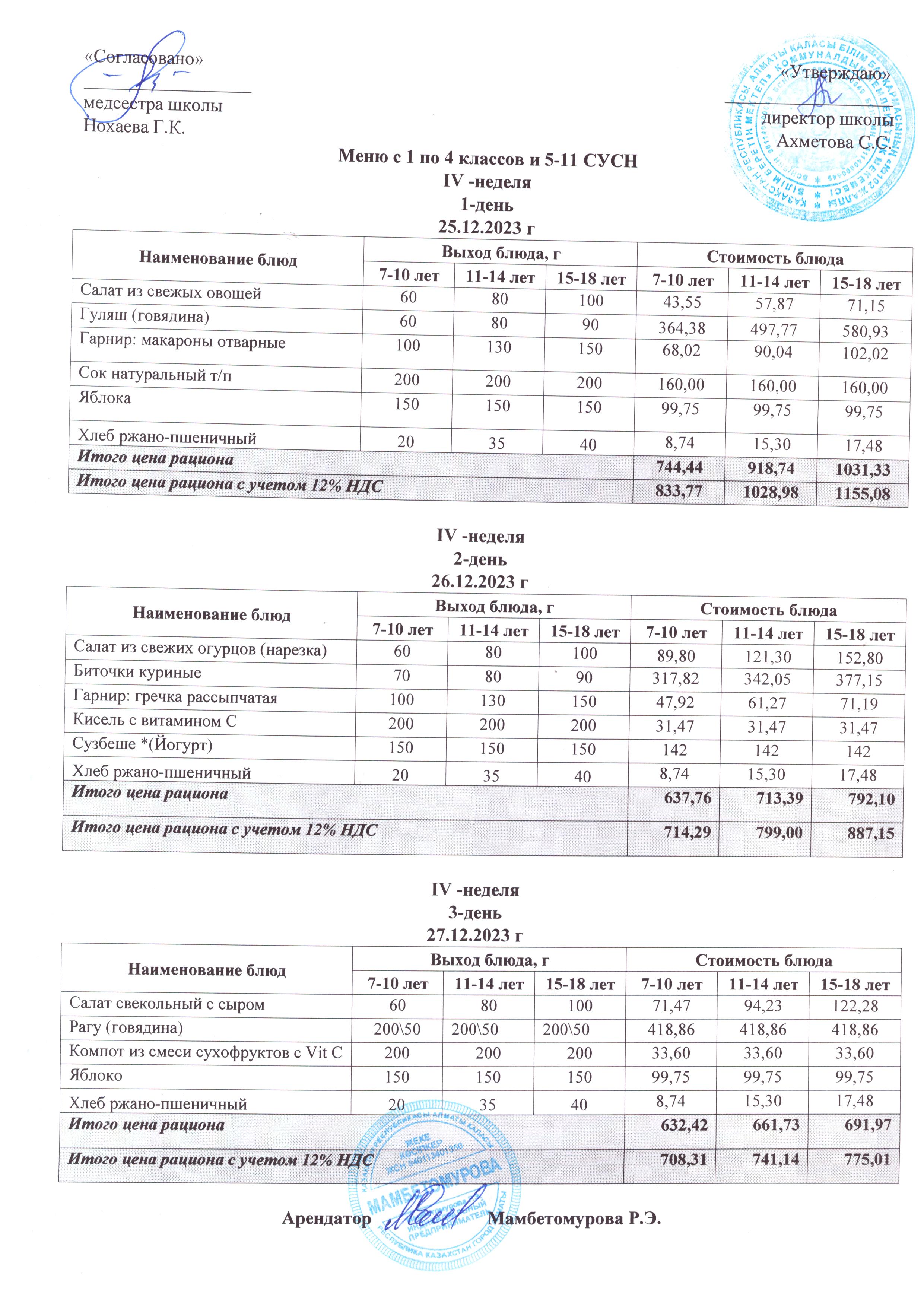 26 желтоқсан күніне арналған ас мәзірі » КГУ «общеобразовательная школа №102» Управления образования г. Алматы