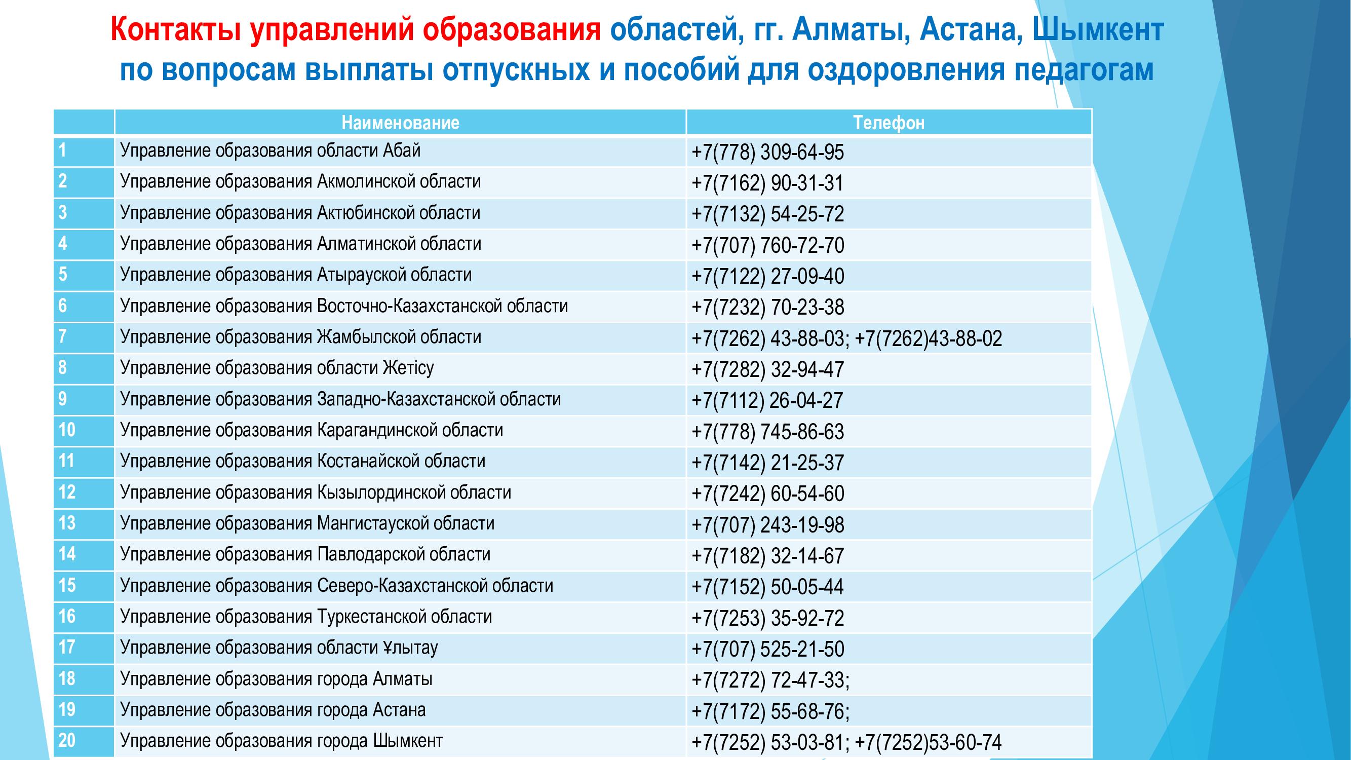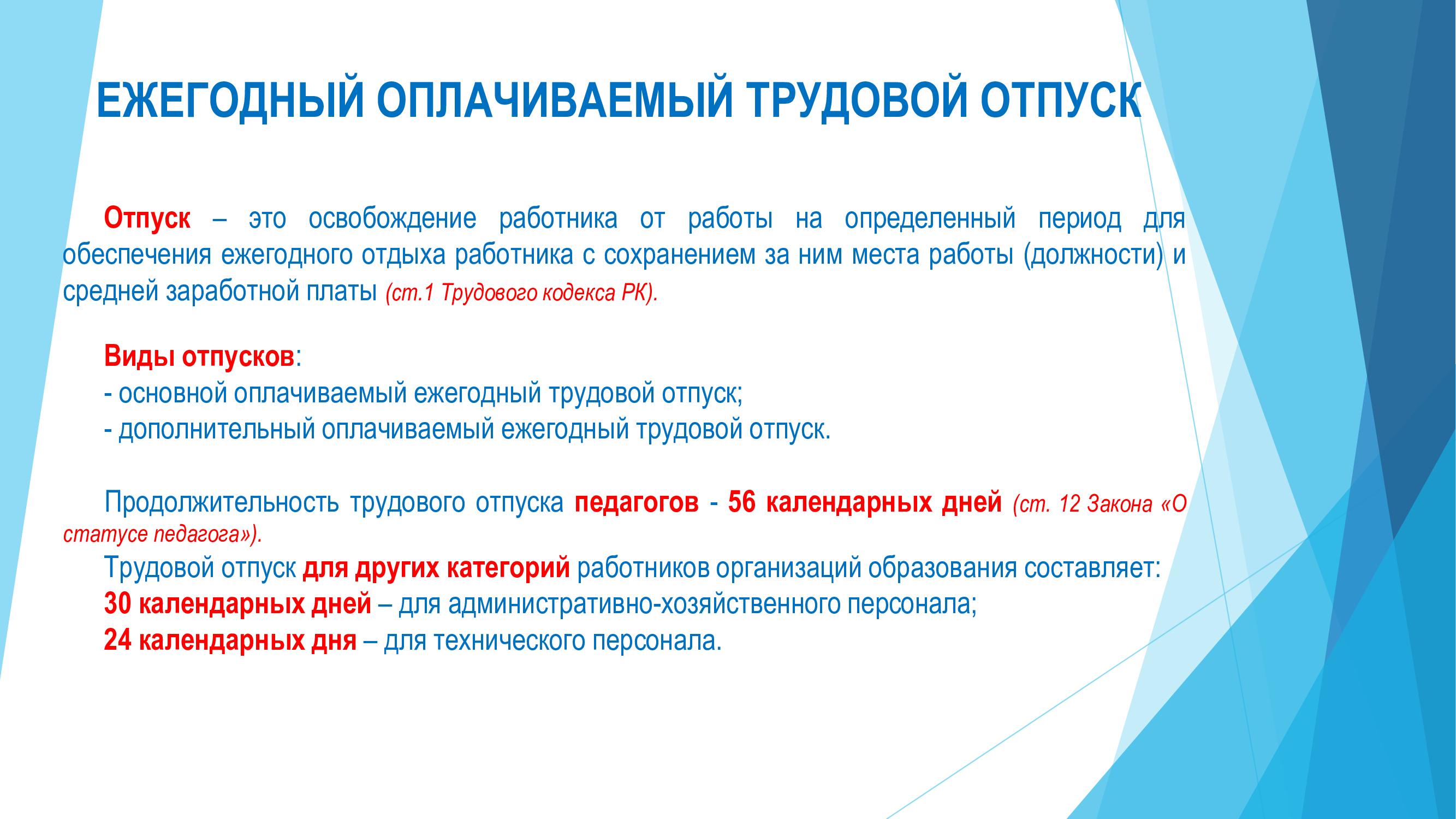 Что нужно знать об отпуске педагогам организаций образования » КГУ «общеобразовательная школа №102» Управления образования г. Алматы