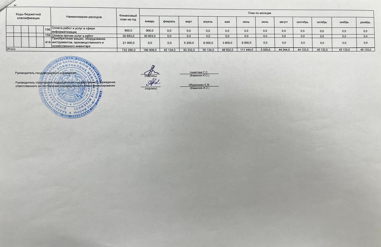 Индивидуальный план финансирования ГУ по платежам » КГУ «общеобразовательная школа №102» Управления образования г. Алматы