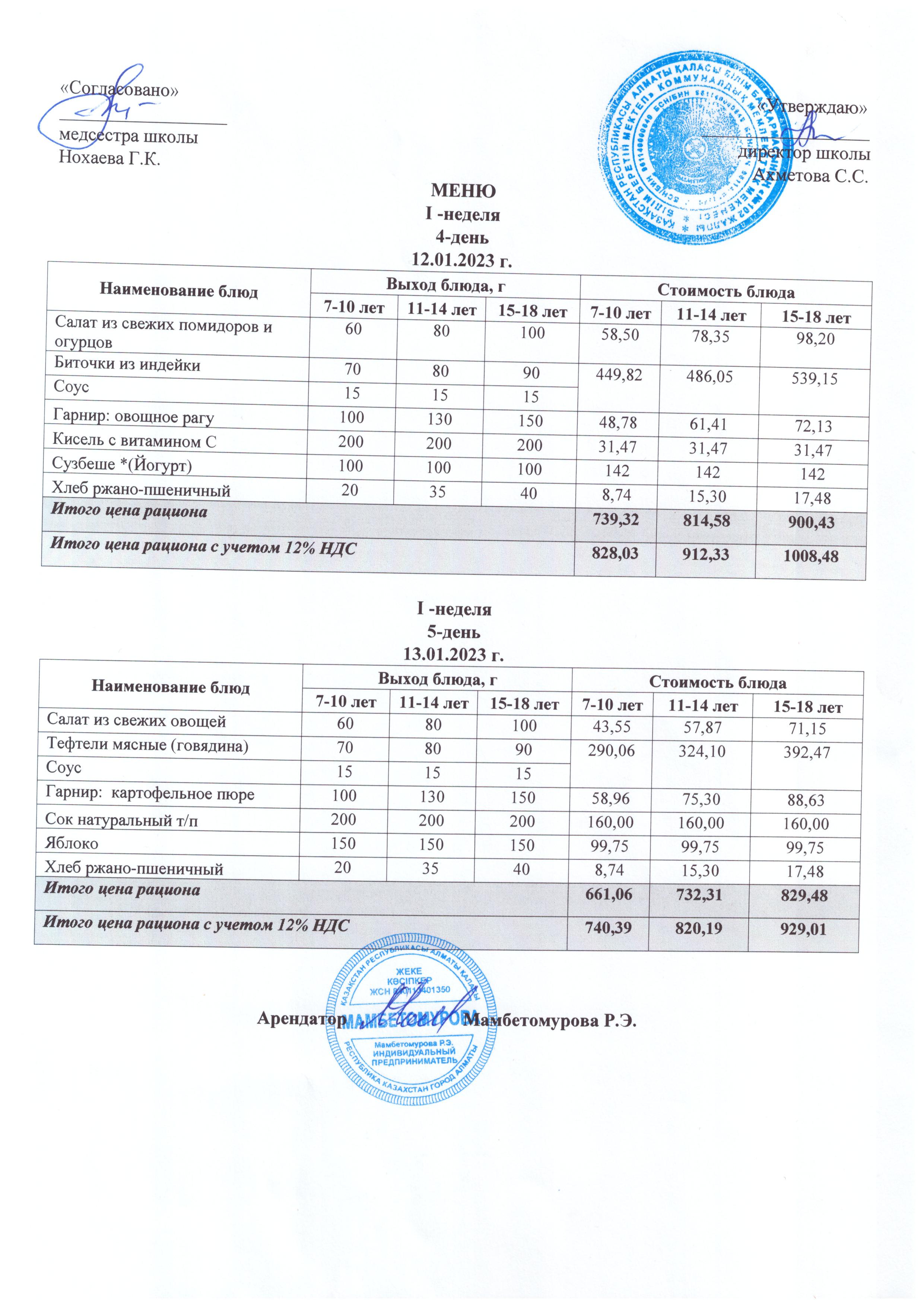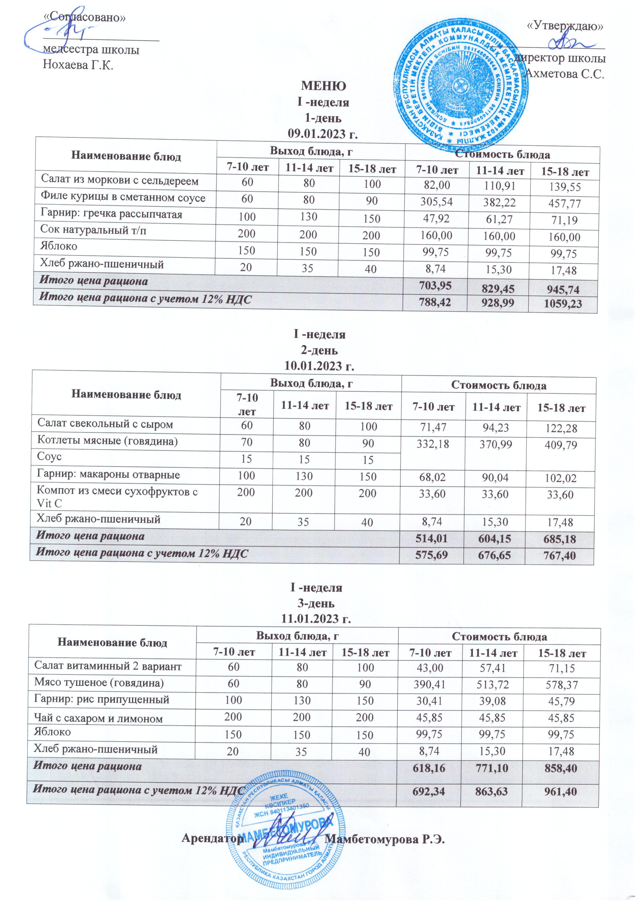 09.01.2023-13.01.2023 оқу күндеріне арналған мәзір