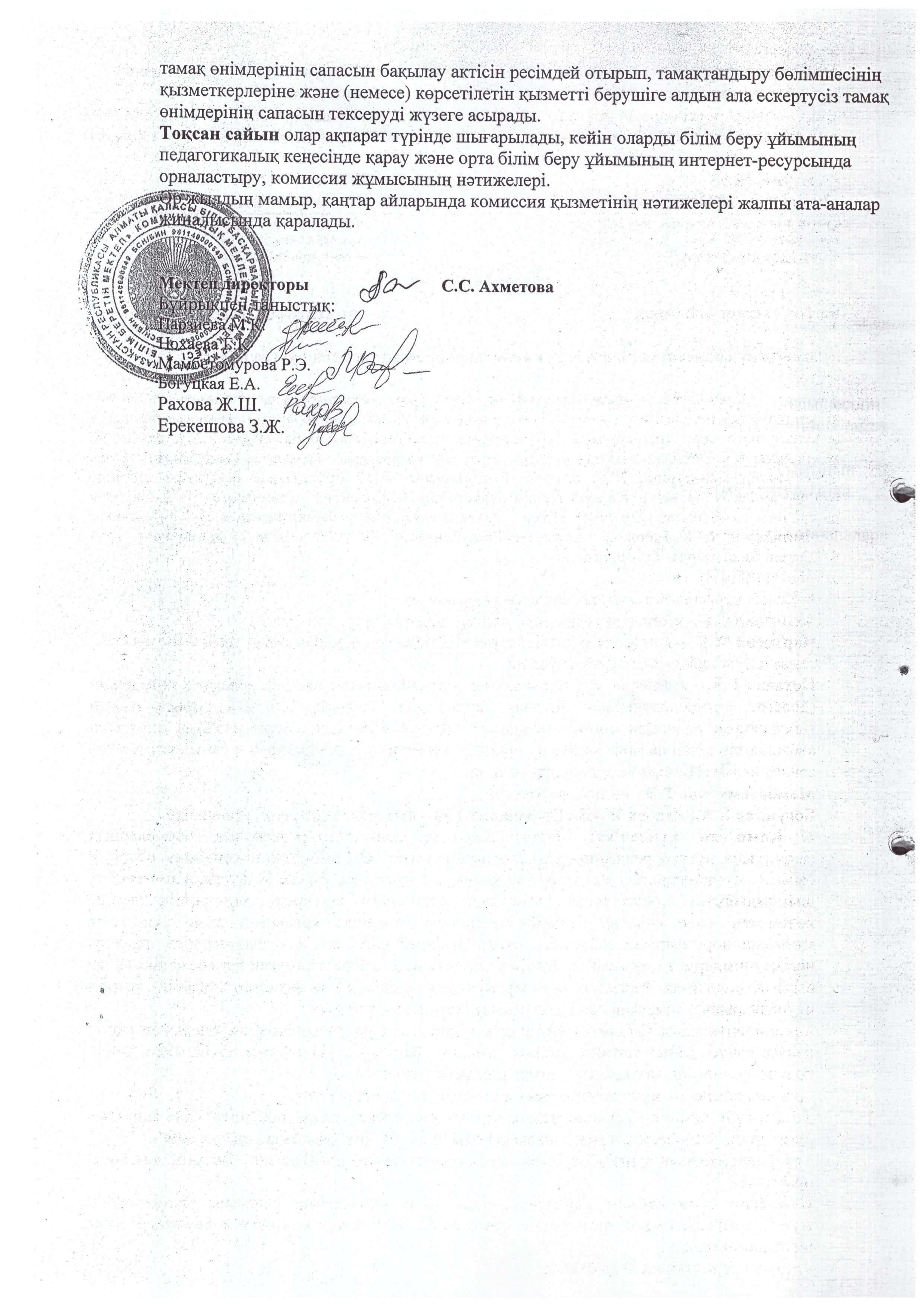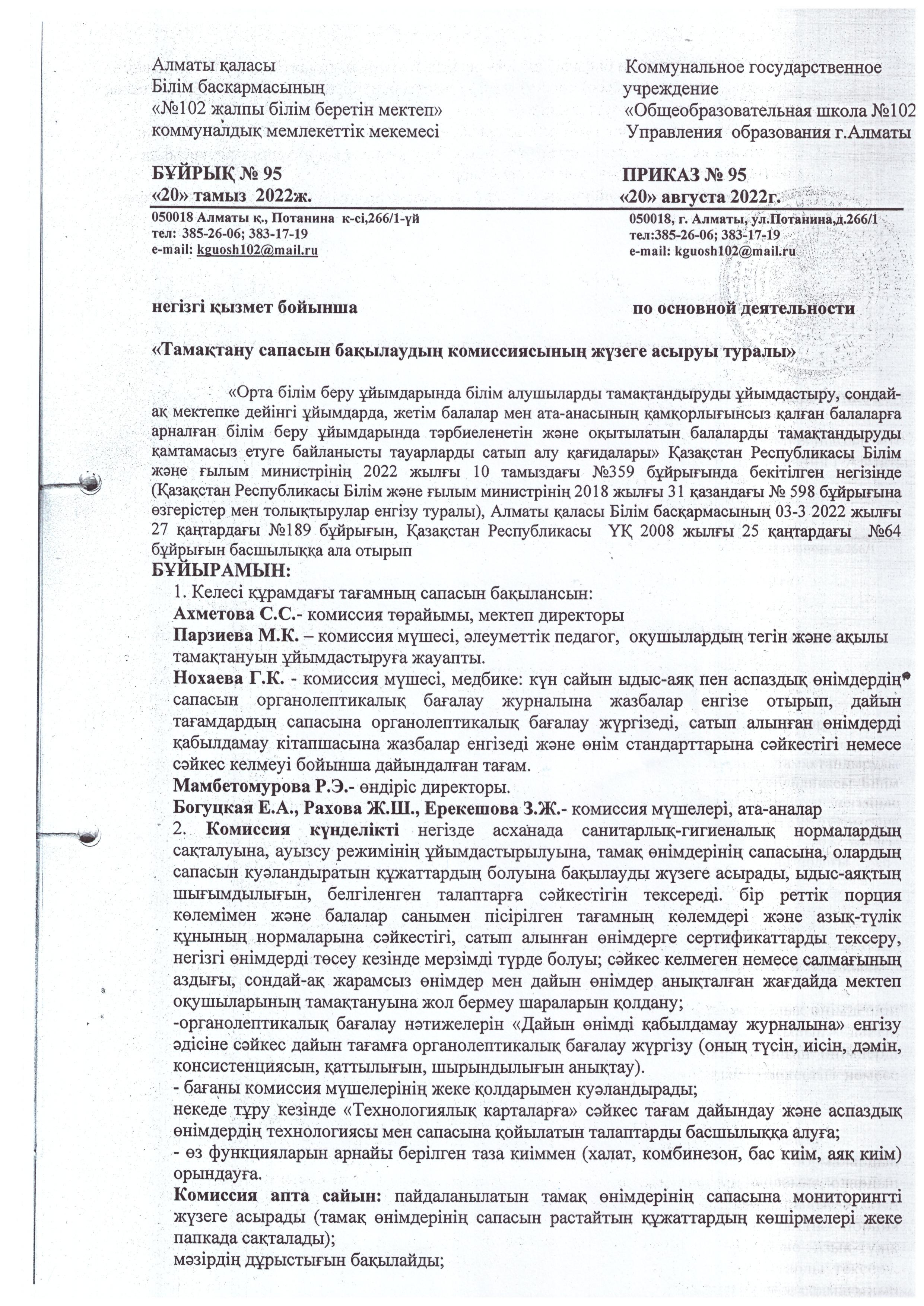 02 қыркүйек 2022 0 1 2 3 4 5 Тамақтану сапасын бақылаудың бракераждық комиссиясының жүзеге асыруы туралы бұйрық